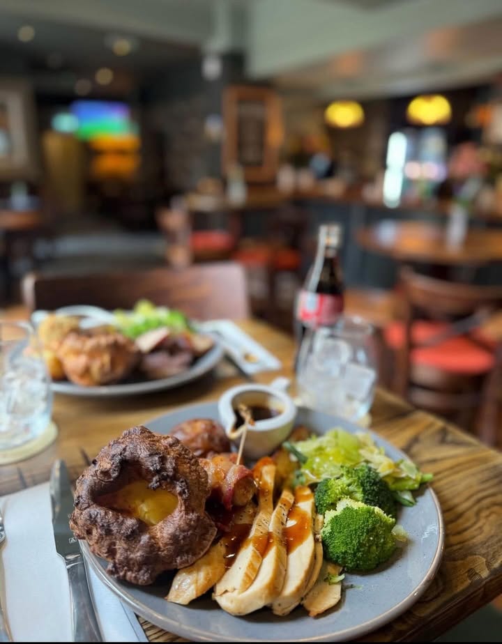 Crispy roasties, rich gravy, and a proper Yorkshire pud — just how Sunday should taste. 🤤 #sundayatthepub